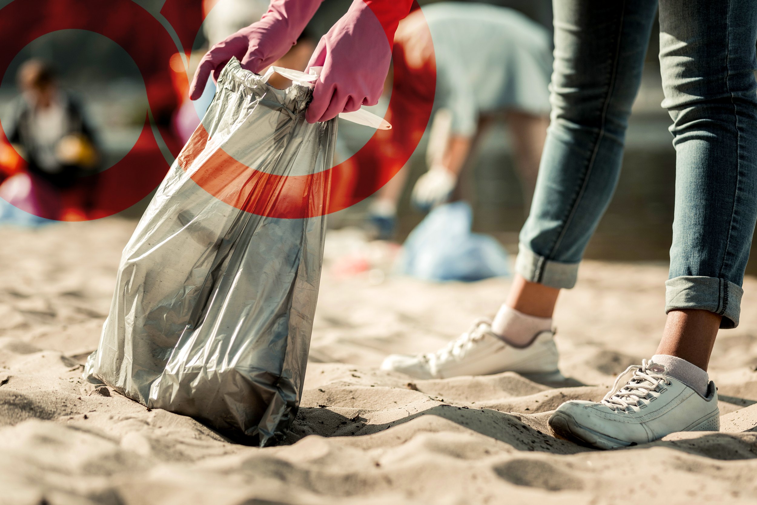 The red, circular visual device symbolizes the interlocking of people working collectively to support and contribute to a worthy cause—speaking to the importance of collaboration. There is a strong inter-dependency needed for success to be realized, and the interlocking symbols echo that.